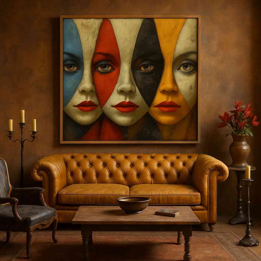 This artwork blends fine art aesthetics with contemporary interior styling, making it a perfect centerpiece for modern homes. The muted yet powerful color blocks add depth without overpowering the space, offering a refined, gallery-style presence.