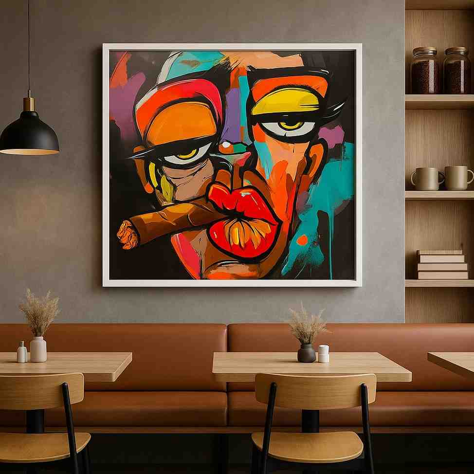 Midnight Rebel is a fearless contemporary abstract portrait bursting with attitude and expression. Bold brush strokes, vivid color blocks, and striking facial geometry come together to create a statement piece that radiates confidence, mystery, and modern rebellion.