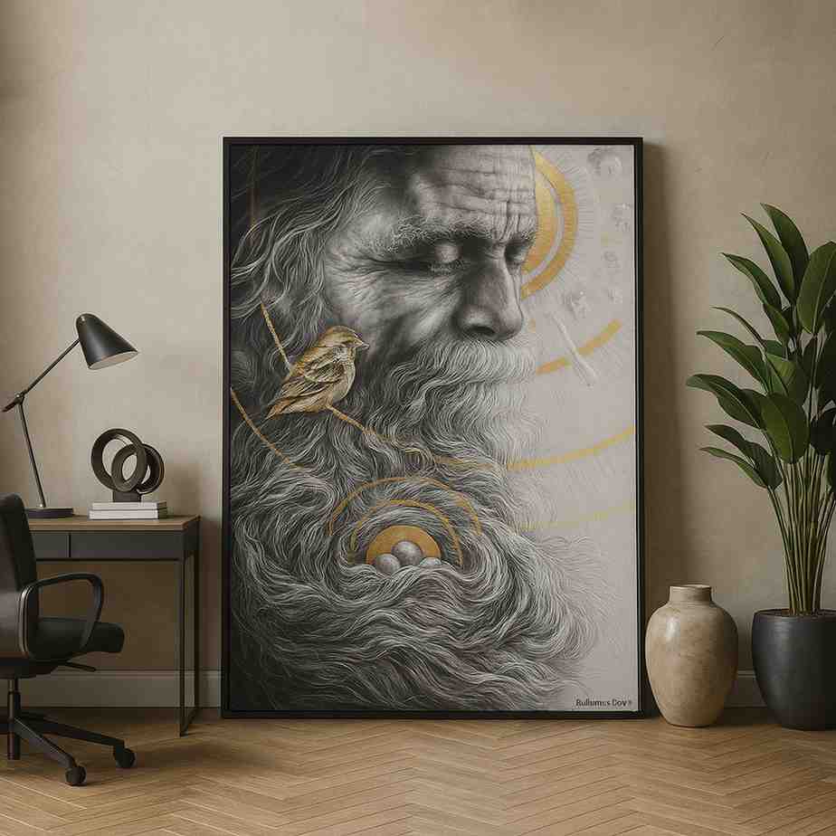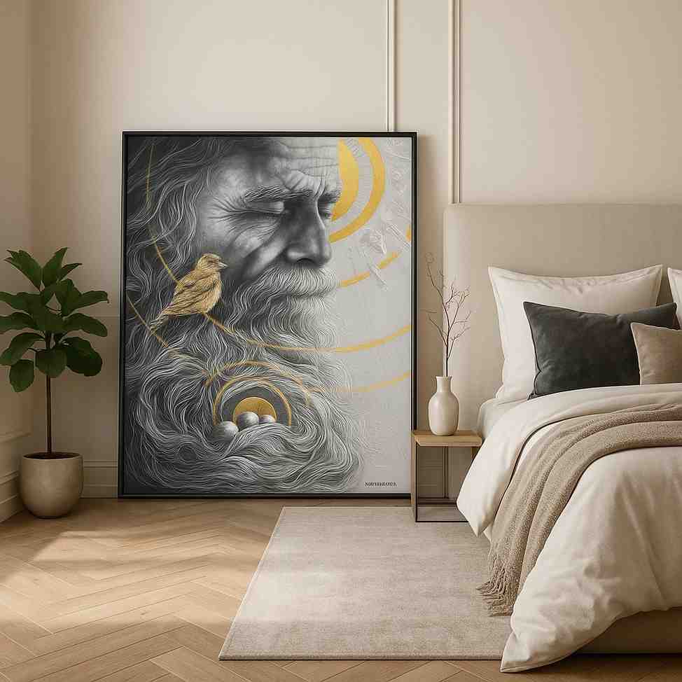 Whether styled in a living room, bedroom, office, study, or hallway, this artwork creates a calming yet impactful visual presence that speaks of experience, thoughtfulness, and timeless artistry.
